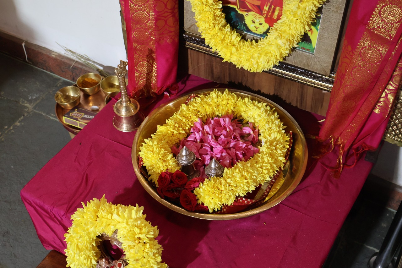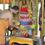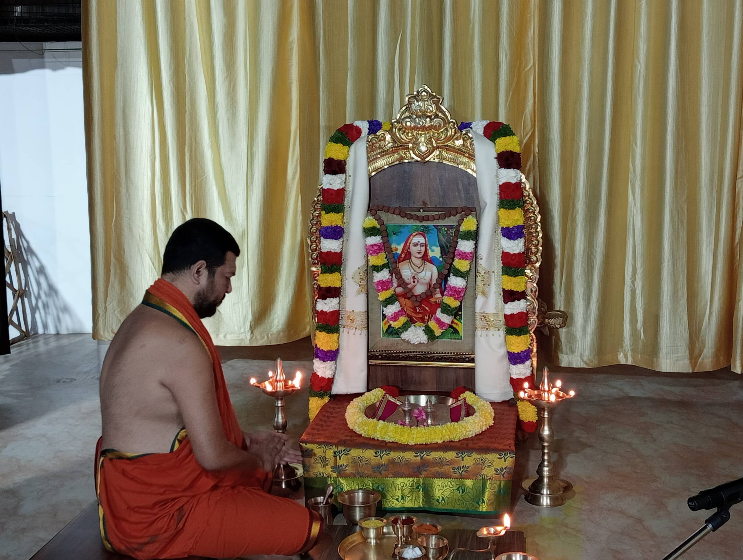 The sacred Paduka of Adi Shankaracharya Bhagavatpada, considered an incarnation of Parameshwara, is a revered object dating back approximately 2500 years. This Paduka, originating from Adi Shankaracharya’s time in Kashmira Mandalam (Kanchipuram), has been worshipped within the holy precincts of Moolamnaya Sarvagnya Shri Sharada Kamakoti Peetam. From the Prathama Acharya to the 69th Acharya, devout poojas have been performed to honor this sacred Paduka. In continuation of this venerable tradition, Shri Jayendra Saraswathi Swami of Kanchipuram and Shri Pranavandana Saraswathi Swami of Pudukkottai Shri Bhuvaneshwari Peetam, have bestowed this illustrious Paduka upon Shri Mantra Peeteshwari Peetam. Regular poojas are performed at the Peetam, ensuring the preservation and honoring of this esteemed legacy with sincere veneration.